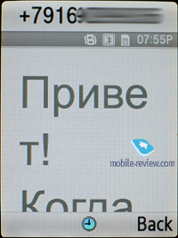 ![]() Starting with the Samsung D900 onwards, the capability of text scaling for incoming messages is present, employing the same concept as Piscel Viewer. The text instantly gets zoomed-in on or out at that even people with serious eye injuries can make out the letters at maximum font size. To indicate this mode, the Samsung U600 had a magnifier icon added, for the purposes of scaling the side volume button is used. This function has no counterparts among the handsets by other manufacturers.