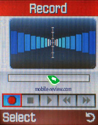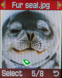 Camera. The device has a VGA camera installed and it agrees on characteristics to the company's other models. While shooting, you can adjust a picture's contrast, enlarge it (8x digital zoom), and change the resolution. Standard functions consist of a timer, frames (wide choice and there are good versions), effects (negative, sepia, grey shades of grey, poster). The handset supports MultiShot of two speeds - normal and high. Each series has 6, 9 or 15 shots. ![]()