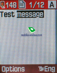 Horizontal scrolling allows listing bookmarks and viewing the phone numbers. Both phone numbers from SIM-card and phone memory are displayed in the total list. There is search by name; you should just enter first letters of the name to change the list. You can adjust up to 9 fast dial numbers. Messages. There are two separate items, which allows operating with SMS and MMS messages relatively. Up to 200 SMS-messages can be stored in the phone. There are up to 9 editable SMS-templates. The phone supports EMS, so it is possible to add pictures, animation and melodies. Set of standard files is usual, there are no changes compared to other models. ![]()