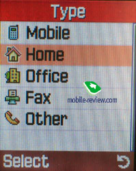This product has a very good localization. There are T9 vocabularies for all menu languages. While inputting data, you could switch between languages. Russian predictive text input is also available. Like other products by the company T9 is always active by default and if you do not use the function, you will have to deactivate it manually every time. Phone book. Up to 1000 phone numbers can be stored in the phone memory. Up to 5 phone numbers, e-mail can be added to one name. All phone numbers can be grouped in caller groups (up to 6). It is possible to assign a melody or a picture to each entry. Unfortunately only pre-default picture can be assigned. It is impossible to add a picture taken by a digital camera. Today it is the main shortcoming of the phones by Samsung. ![]()