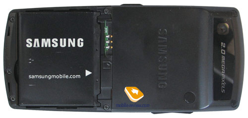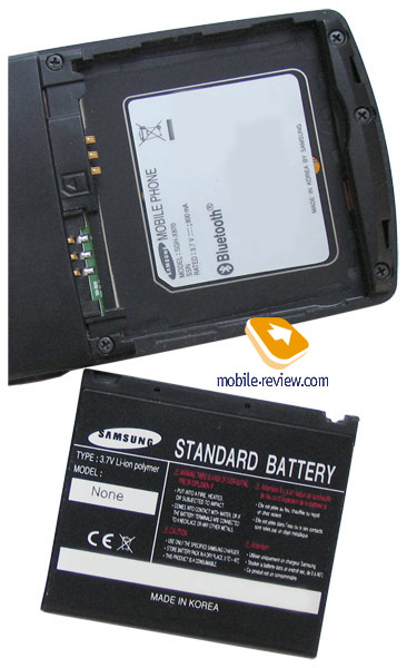 Крышка аккумуляторного отсека защелкивается достаточно надежно, но со временем ее крепление может ослабнуть. Это означает, что, вынимая аппарат из кармана, вы можете сдвинуть крышку, появится небольшая щель. Иногда крышка даже слетает, у меня это произошло два раза. Оговорюсь, что считать данный факт проблемой или нет – зависит исключительно от вашего взгляда на вещи. Для меня это не является каким-то камнем преткновения и не портит впечатления от аппарата, понятно, что при той толщине крышки, что есть, добиться надежного крепления для всех ситуаций нельзя. В подавляющем большинстве случаев крышка надежно закреплена, этого вполне достаточно. Аккумулятор в этом аппарате под стать его размеру, хоть и выглядит вполне привычно. Батарея потеряла немного от емкости, в сравнении с обычными аппаратами, где она имеет объем в 800 мАч. Здесь же литий-ионный аккумулятор емкостью 630 мАч. Производитель заявляет о том, что аккумулятор способен обеспечить до 210 часов работы в режиме ожидания, а также до 2.5 часов в режиме разговора. В условиях европейских сетей аппарат в среднем работал около 2-3 дней при часе разговоров всего и при использовании только будильника. В то же время в московских сетях при 1.5 часах разговоров его хватало примерно на 2 дня. Отсюда можно сделать вывод, что модель будет работать как минимум 2 дня при средней нагрузке, но достижимы и 3 дня (минимальная нагрузка). Полное время зарядки аккумулятора составляет около 1.5 часов. В силу размера корпуса батарея повышенной емкости не предусмотрена для данной модели.
