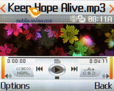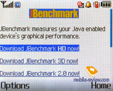 Во время проигрывания показывается номер текущей песни, общее число композиций. Эквалайзер выполняет развлекательную роль, отдельных настроек нет (только выбор классика, рок, джаз, нормальное воспроизведение). Проигрывание может идти как через стереогарнитуру, так и через громкую связь. Громкость имеет 10 градаций. Пользователь может создавать свои плей-листы. Диктофон. Всего можно записать до нескольких часов голосовых памяток, при этом число записей неограниченно. В принципе, ограничение на длительность записи указывается пользователем, оно может быть равно 1 часу. В памяти все записи хранятся в отдельной папке. Запись диктофона во время лекций, круглых столов вполне адекватна, ее можно расшифровать. В какой-то мере телефон заменяет цифровой диктофон. Java World. В телефоне только 2 предустановленные игры: это BobbyCarrot и FreeKick. Загрузка новых приложений и игр возможна как по воздуху, так и через Bluetooth с других устройств (требуется также JAD-файл), при этом размер JAR-файла не может превышать 1 Мб. Объем памяти, выделенной для Java-приложений, равен 4 Мб.