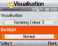 Настройки. Традиционно можно выбрать цвет шрифта на экране в режиме ожидания, защитить паролем любой раздел телефона (сообщения, короткие сообщения, органайзер и т. д.). Указывается время подсветки экрана, его яркость. Для режима набора номера можно выбрать, как будут выглядеть цифры, их размер, а также цвет. Очень интересная особенность аппарата, которая пока доступна только для нескольких моделей от Samsung. В настройках безопасности можно защитить паролем отдельные разделы телефона.