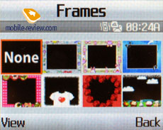 Камера. В Samsung X820 2-мегапиксельная камера с CMOS-матрицей (аналогична D600). Интерфейс камеры стандартный для продуктов компании, можно перевернуть изображение по вертикали, отключить звук затвора. Качество сжатия снимков выставляется из меню – Super Fine, Fine, Normal, Low. Значение ISO может выставляться от 100 до 1600, но лучше оставить это значение по умолчанию. Замер композиции – по центральной точке либо всей площади снимка. Баланс белого имеет несколько значений, по умолчанию стоит режим Авто.