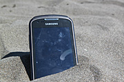 Крепление ремешка сделано с умом: внутри есть петелька, в которую продевается нитка, затем ремешок выталкивается наружу. В закрытом состоянии крышка прикрывает это место и не позволяет воде попадать внутрь. Задняя крышка крепится металлическим поворотным винтом, он достаточно легко открывается с помощью монетки. Фиксация крышки не вызывает никаких нареканий, но именно это место является самым слабым в телефоне с точки зрения проникновения воды. Купаясь в море около часа, на глубине до двух метров (изредка нырял), я увидел, что аппарат пропускает немного воды (следы соли после высыхания под винтом). Но дальше этого места вода не распространилась, поэтому можно считать, что проблемы как таковой нет. При погружении на большую глубину (около 5 метров, акваланг), аппарат начинает пропускать воду, она появляется в аккумуляторном отсеке, хотя ее и немного. С другой стороны, стандарт защиты IP67 не предполагает такой глубины, и мой интерес был исключительно академическим. В воде модель ведет себя как типичный IP67, проблем нет.