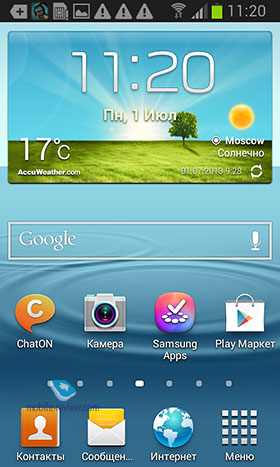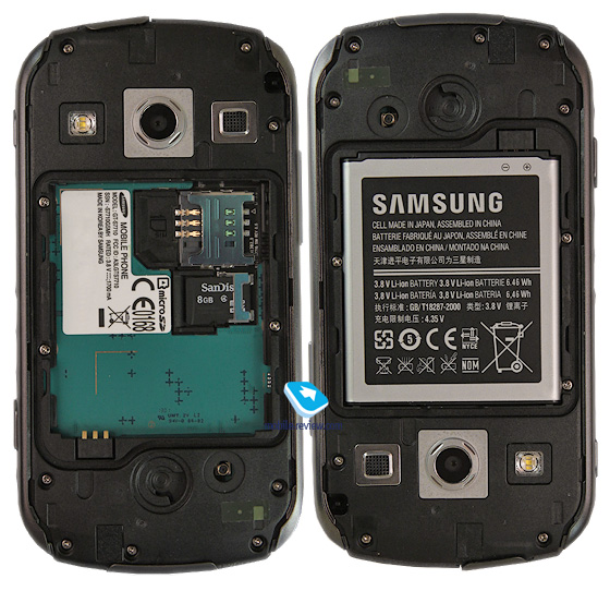 У аппарата отчего-то нет автоматической регулировки подсветки, как следствие, вам придется менять ее самостоятельно. Экран TFT, при этом он довольно бюджетный (две точки прикосновения), на солнце сильно выцветает, и придется искать угол, чтобы увидеть информацию на нем. Почему в Samsung решили сэкономить на экране в таком аппарате, для меня остается тайной. В остальном, экран типичен, и можно настроить размер шрифтов под себя. Но с точки зрения универсальности использования в разных условиях он далек от идеала. Обычные, серийные модели, например, Galaxy S3/S4, на солнце ведут себя лучше. АккумуляторВ телефоне стоит Li-Ion батарея емкостью 1700 мАч. При небольшой загрузке (звонки, SMS) аппарат сможет проработать до двух дней. При полноценном использовании вы увидите почти полный световой день (интернет, почта и так далее). В походных условиях можно рассчитывать на работу в одни сутки, когда вам не нужно много информации из сети, а число звонков довольно невелико. Типичные показатели для современных Android-смартфонов.
