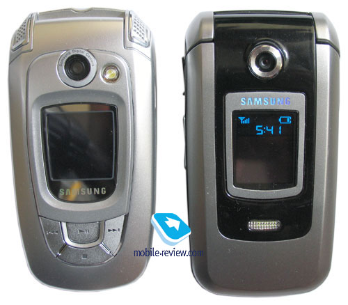 A megapixel camera objective is on the front surface, and a non-impact flash is lower. The external screen is OLED, which allows viewing two lines with time and icons indicating signal level, battery charge and events always. The main part of the screen fades in the standby mode and gets active with an event or shooting in a closed mode. ![]()