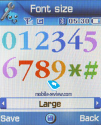 Due to the body size the keypad got large buttons, comfortable to work with. And only the disposition of fast menu and video call buttons rouses bewilderment, since they take the place of soft-keys, while the last ones are on the top. While working with the phone, I used to mistakenly press these separated buttons instead of the soft-leys. That is uncomfortable and spoils the whole impression of the phone, thus you'll have to concentrate on pressures and control them. A separate mp3 player button is on the very top.