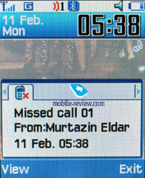 New names can be entered only through the main menu; the right soft key always calls for the name list only. You can create your own visit card; its format would be the one of a regular file from the phone book. There can be up to eight numbers in the speed dial list; peculiar is the fact that separate numbers of one name may be in this list as well. The subtitle of the chosen name (but not of the phone type) is displayed on the buttons. The comparison of this phone book with phone books of other phones is rather interesting. It is not fully compatible with MS Outlook's layout as the phone has fewer fields. Consequently, the phone gives way to all the smartphones (the phone book options are the most extended ones in those). The phone book is moderate here when compared to the phones such as Siemens and Alcatel. However, the model is a decent rival to all other phones. The phone also has a very convenient phone book, which is a pleasure to work with. When receiving a call, a picture is not displayed on the full screen, but only on a part of it (approximately 120x140 pixels). In a way, this can be seen as a big disadvantage, however the developers may resolve this shortcoming in some time. Another serious disadvantage of this phone is the lack of voice recognition. Users of a Bluetooth-headset or an in-car speakerphone are particularly interested in this function. Call lists. Up to twenty phone numbers are displayed in each list. There is a combined list of all the last calls with an icon indicating a call type. Tilting the scroll key horizontally, you may switch quickly from one list to another. The date and the time of the call (it's duration is not kept) can be seen for separate files. As always, the overall time of the calls and their prices can be viewed in this menu (this service has to be installed). ![]()