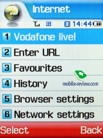 MenuThe main menu is represented in the only way - as a grid of icons. All submenus have the appearance of lists. You can pick certain functions and assign to the navigation button. In general, the menu lay-out seemed quite logical, navigation brings no problems. The device features 150 Mb of dynamic memory, yet lacks memory extension slots, so it looks very oddly in the range of similar models.