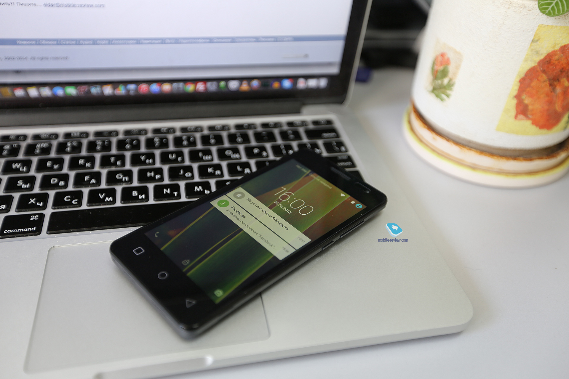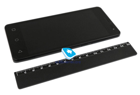 По качеству сборки к аппарату нет никаких претензий: надежно, добротно, нет люфта деталей. Размеры – 145.5х75.5х9.4 мм, вес – 182 грамма. Габариты таковы, что не угадаешь, что в этом аппарате такая большая батарея, этим подобные телефоны мне и нравятся, в том же Lenovo A5000 сходные размеры. А это значит, что в руке аппарат лежит отлично, его можно спрятать в кармане и не чувствовать дискомфорта. Не легкий, но и психологическую отметку в 200 грамм не перешел. Например, в Highscreen Boost 2 SE мне не нравился именно вес устройства. Разница кажется незначительной, но в жизни она ощущается, и довольно серьезно.