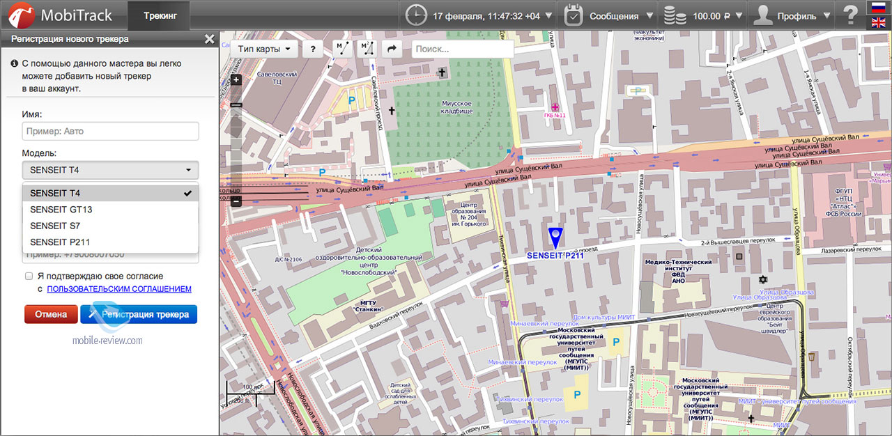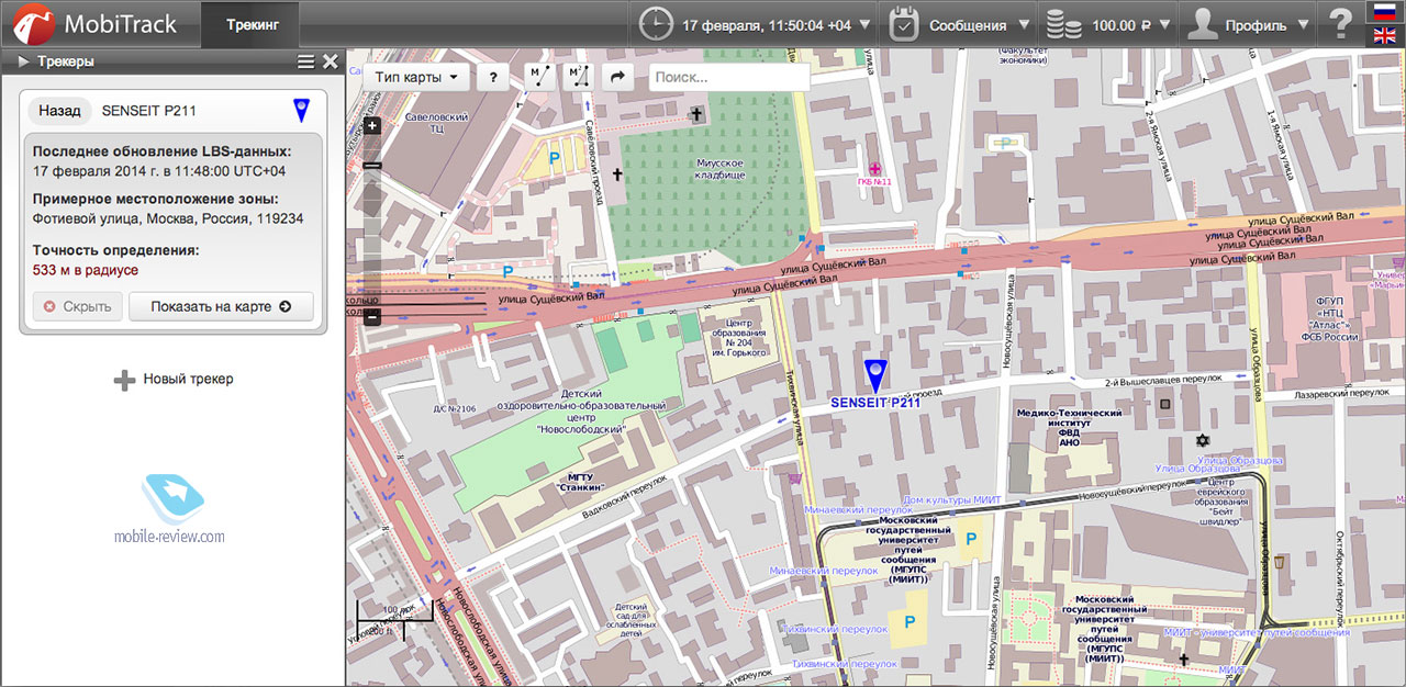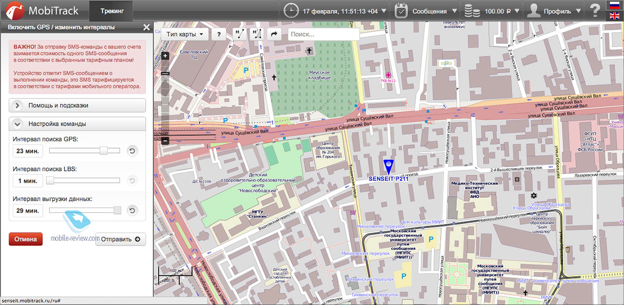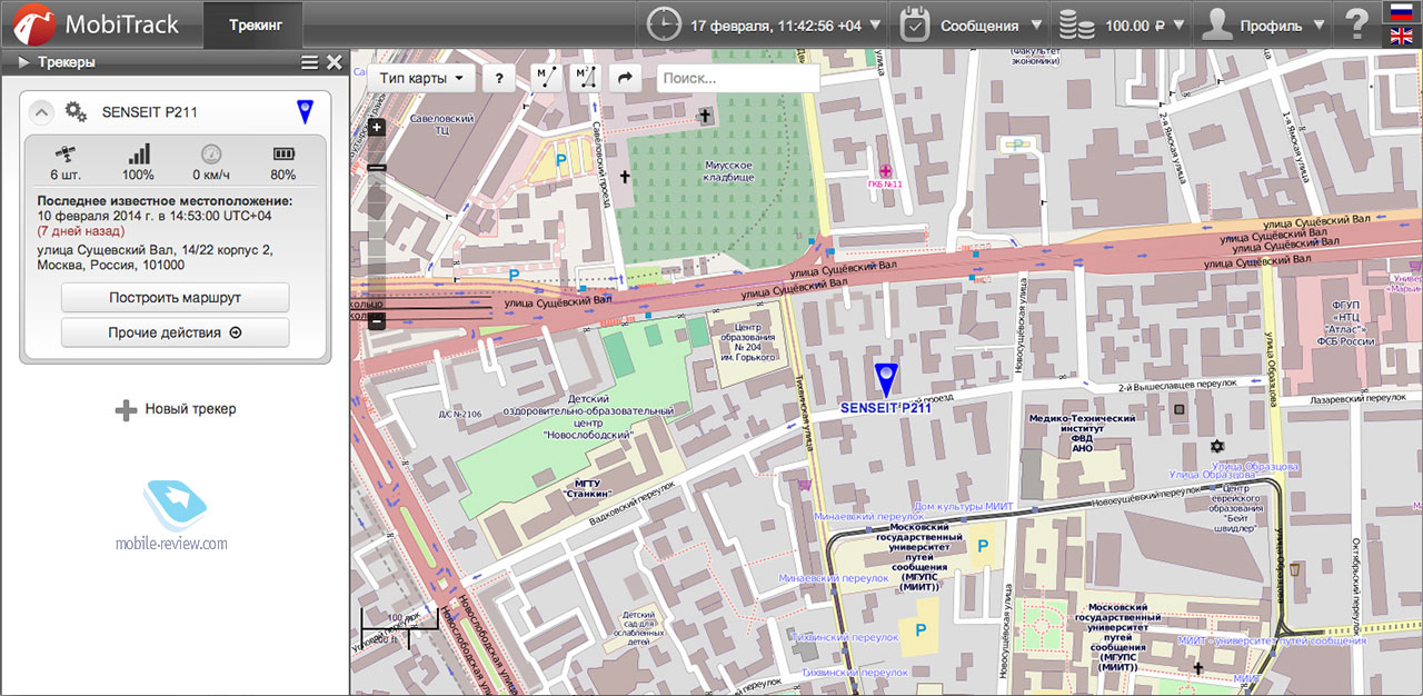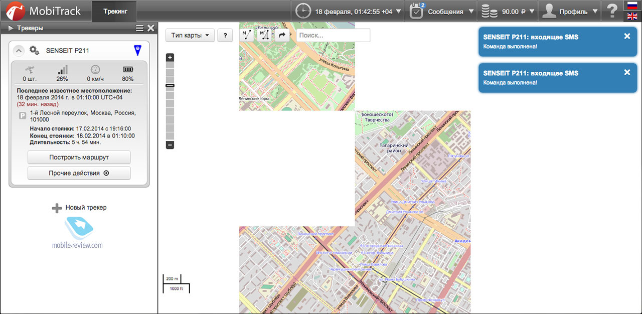 Аппаратный GPS выступает в качестве трекера, который всегда с вами. Этот аппарат является полноценным трекером, который по умолчанию определяет все ваши координаты раз в пять минут (в программе можно выбрать интервал работы), данные передаются на сервер с помощью интернет-соединения. Можно не пользоваться сервисом, это опция дополнительная, но приятная. Так, в комплекте с телефоном идет бесплатная подписка на MobiTrack, но в ней нет построения маршрутов, их сохранения в памяти, уведомлений по SMS, это все доступно в платных версиях сервиса, которые вы можете включить, если поймете, что они вам нужны.