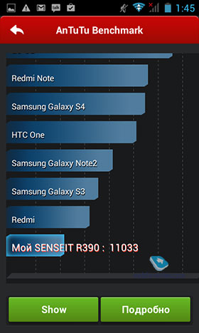 Память, платформа, производительностьАппарат построен на платформе MediaTek MT6572A, это двухъядерный процессор с частотой до 1.2 ГГц, его нельзя назвать сверхпроизводительным, но для такого экрана его вполне хватает, а главное, что он экономичен и дает долгое время работы. Любители виртуальных попугаев могут посмотреть на результаты тестов.