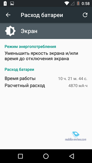 В среднем аппарат работает около двух-трех суток при условии, что вы звоните и пишите SMS, экран почти всегда выключен (час экрана, 6 часов звонков). Если пользоваться смартфоном по назначению, то у вас выйдет примерно 1-2 дня работы, что неплохо для такой модели. У особо бережливых получится до 5 дней работы. Отнюдь не рекордсмен, но для своего класса обеспечивает хорошее время.