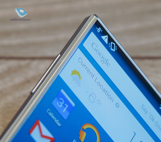 В сравнении с Samsung Galaxy Note 4 Элементы управленияСенсорных и аппаратных клавиш под экраном в Aquos Crystal нет. Единственные аппаратные кнопки – клавиша питания на верхнем торце справа и кнопка громкости на левом ребре сверху. Включать смартфон тапом по экрану или каким-то другим способом, кроме нажатия кнопки питания, нельзя, но несмотря на ее расположение на верхнем ребре, пользоваться этой клавишей удобно. В основном за счет компактных габаритов устройства. На верхнем торце, помимо кнопки питания, находится 3.5 мм мини-джек, на нижнем – разъем microUSB и отверстие микрофона.
