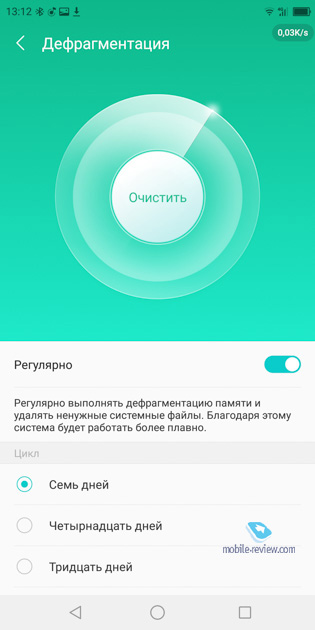 Из программных особенностей аппарата можно обратить внимание на парочку полезных и парочку бесполезных (и даже непонятных). Полезное: возможность автоматической записи телефонных разговоров; отображение скорости подключения к интернету поверх всех экранов; функция записи экрана; поддержка жестов (знакомый “двойной тап” для включения, двойное нажатие кнопки питания для быстрого запуска камеры и другие); настройка наэкранных кнопок и плавающего виртуального “джойстика”; настройка сценариев режима “не беспокоить”. Есть “черный список”, но для звонков и сообщений он настраивается в разных местах. А еще есть типичное приложение для удаления “мусорных файлов” и очистки ОЗУ. Но почему-то у него есть “конкурент”: схожее (но все-таки другое) меню в системных настройках. Каким из них пользоваться лучше, непонятно.