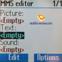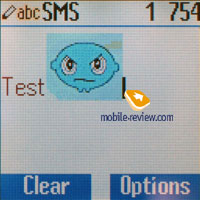 Телефонную книгу можно редактировать по своему усмотрению, убирая или добавляя тот или иной пункт. При просмотре можно включить фильтр контактов по определенному полю. Например, выбрав адрес электронной почты, в книге будут отображаться только контакты, в которых заполнено данное поле. Просмотр списков контактов осуществляется отдельно из памяти аппарата и SIM. Поиск в книге происходит по первой букве. В телефоне 7 групп, для каждой можно изменить имя и выбрать иконку. Также возможно назначить мелодию вызова для каждой группы пользователей, но сделать это возможно только через меню «Мелодии звонка». Сообщения. В памяти телефона может храниться до 100 сообщений. Аппарат поддерживает EMS, в памяти уже предустановлено несколько небольших анимаций и картинок. Есть возможность создавать свои шаблоны. Поддерживается работа с длинными сообщениями (максимально 760 символов). Сообщение можно отправить нескольким абонентам (выбор из групп).