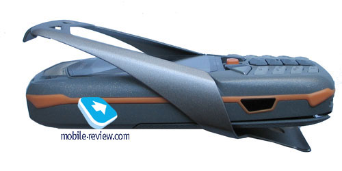 The back cover that shields the battery has the special long grooves, which also makes the phone different from CX65. A rubber pad that you can install beneath the cover is included into the delivery kit. Two sets of mufflers for the interface and antenna connectors and the camera are also included into the kit. There is also a ring (there is no practical value in it) for the camera and the rotating blocking key.