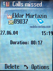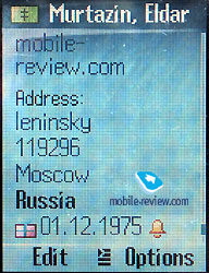 There are nine groups of the phone subscribers in the phone. You can rename the groups and choose a picture for each. You can assign a call melody for each group although you would not find this setting in the menu of the phone book; it is kept in the menu of the ring settings. You might not find this very logical though you easily get used to it. At the incoming call, the picture of the subscriber is not displayed on the full screen, although it is big enough. Another disadvantage is that the number is displayed only for the first few seconds and then is replaced by the photo if there is one. The type of the number is not displayed either, the name only. Even when you are calling someone, you press the name of the subscriber, choose the needed phone number from the list and dial it. The icon is the same for all the numbers. Now you may fairly ask why you, except for the sake of synchronization with PC, would split the numbers by groups. You cannot rename the separate fields, which means that if the subscriber has two mobiles, you have to put the second one as a main number or as an office number. This does not truly cause any problems although you might get lost at times especially if you have many friends with several mobiles.