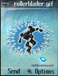 Messages. You can save up to 100 messages in the phone’s memory. Once again, the memory is dynamically shared and you have to keep this in mind. The messages from both the phone’s memory and from the SIM-card are displayed in the main list. A special sign marks the latter ones. You can create the messages’ samples and the separate folders. There are MMS messages in the phone; the settings are simple and with the advice of your operator, you can create them in three to four minutes. Obviously, it would be better if you include the GPRS and use it for the sending/receiving of the multimedia messages-this way will save you money. ![]()