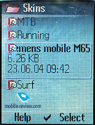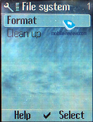 File system. This the utility for the view of the content of the flash-memory kept for the user’s records. You can create the folders of your own and move around the content of the existing folders or else change the way the information is displayed (list or icons with the graphics’ preview). You can easily use the phone as the information holder; you just have to send a file of any format to it. ![]()