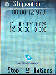 Another nice function that is offered in the organizer’s menu allows you to check the time in the biggest world cities. The tape recorder is also kept here. The duration and the amount of the footages depend on the available memory of the phone. This would be approximately 140 minutes by default. Unfortunately, we did not succeed in activating this function at the talking mode; in our case, the phone would start reloading and we would end up switching it on and off.