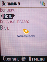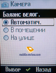 Запись видео. Общая длина записанного ролика зависит от места на карте памяти или телефоне, но не может превышать 1 час 30 минут. Среди дополнительных настроек продолжительности записи присутствуют запись для короткого и длинного MMS сообщения. Размер короткой записи составляет 93 Кб, длинной – 293 Кб. Во время записи видео звук можно отключать, или записывать ролик со звуком. Баланс белого выставляется автоматически, но есть возможность ручной установки в положение на улице или в помещении. О размере кадра при съемке тоже нужно догадываться. Максимальное качество соответствует разрешению 176х144, обычное – 129х96. При съемке видео работает цифровой зум и регулировка яркости. Видео можно воспроизводить в полноэкранном варианте. На телефоне без проблем воспроизводятся файлы, записанные внешними источниками. Встроенная вспышка может работать в режиме фонарика.