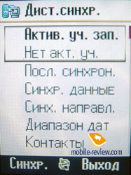 Дистанционная синхронизация. Siemens использует протокол SyncML для удаленной синхронизации данных телефона с внешним сервером. По умолчанию все базы для синхронизации недоступны, но в базу обмена можно включить контакты, встречи, задачи и заметки. Присутствует направление синхронизации – можно обновлять данные на сервере, на телефоне, или и там и там.