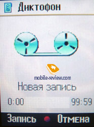 Диктофон не работает во время разговора. Для записи доступен весь объем свободной памяти.