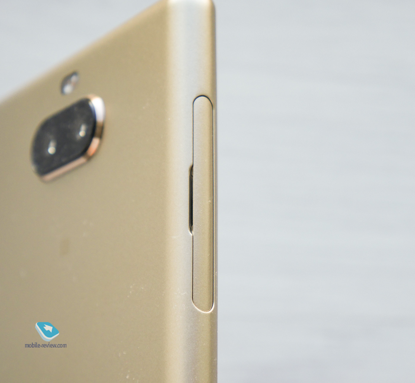 На правом торце находятся кнопка включения, качелька регулировки громкости и отдельный сканер отпечатков пальцев. В Sony отказались от специальной кнопки камеры, теперь сделать снимок можно по нажатию на качельку. Как и у Xperia 10, в 10 Plus обе кнопки сильно утоплены в корпус, из-за этого пользоваться ими неудобно. А вот отдельный сканер, наоборот, хорош, теперь при включении экрана смартфон не будет сразу же разблокироваться, так что вы легко сможете посмотреть уведомления на экране блокировки.