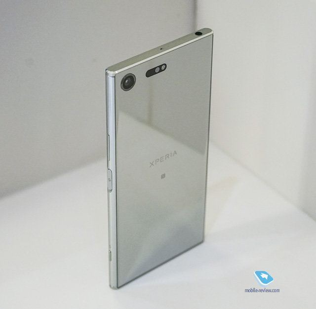 На задней части устройства - объектив камеры, заключенный в стальное кольцо, чтобы стеклышко не царапалось, рядом - вспышка и датчики (лазерный автофокус, IR-RGB датчик) в центре - область NFC, логотип XPERIA. Под заглушкой - слот для карты nanoSIM и карты памяти, не бойтесь, microSD никуда не делась, можно будет использовать или две SIM-карты, или карту памяти и одну «симку». На правом торце - кнопка с встроенным датчиком отпечатка пальцев, кнопка съемки, качелька регулировки громкости перенесена повыше, и это правильно. Апппарат, как и XZ, со всех сторон гладкий, его можно крутить в руках, в любую сторону, и получать от этого большое удовольствие.
