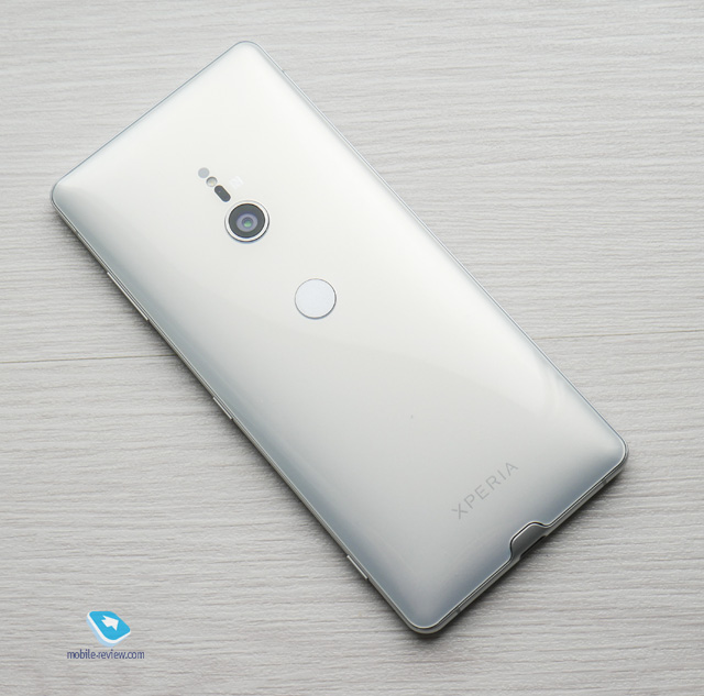 На задней крышке находятся основная камера и сканер отпечатков пальцев. Еще одна особенность дизайна Ambient Flow — симметричность. Так, сканер находится точно по центру задней крышки. В Sony говорят, что при наборе текста большой палец ложится как раз на него, однако когда мы вытаскиваем смартфон из кармана, то палец лежит на камере, а не на сканере, так что к его расположению придется привыкать.