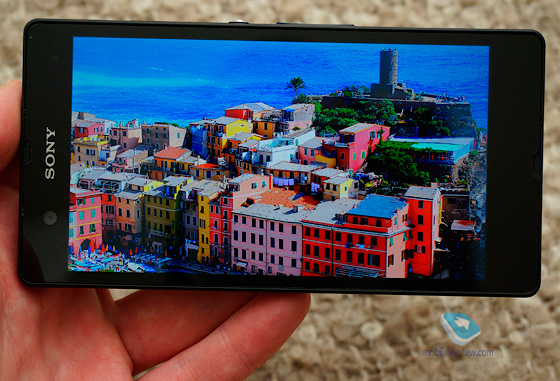 Другой вопрос, что по сравнению с рядом других устройств, например, с HTC One, экран в Z не выдерживает никакой критики, кажется блеклым, цвета при взгляде под небольшим углом теряют насыщенность, нет запаса яркости. Повторюсь, все это заметно при сравнении, ну а в жизни сразу же обращаешь внимание лишь на углы обзора, белый цвет начинает чуть желтить. Собственно, экран здесь самая спорная деталь, и придраться, по большому счету, можно лишь к нему. И тут уж вы сами должны решать, сможете ли использовать такой смартфон или нет. По мне, так привыкнуть можно - при покупке попробуйте запустить браузер, другие приложения, не стоит оценивать дисплей, используя предустановленные картинки.