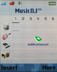 E-Mail client supports sending and receiving messages, all possible encodings are supported. In this menu Instant Messaging is present as well, sort of ICQ analogue. Call list. In common list you will see up to 30 entries with date and time assigned to each. Near each of them an icon will explain to what type of call it refers (missed, received, dialed). Besides this in common list additional icons are present, they show if the phone number is present in the phone's memory, or SIM-card's. The list of missed calls can be viewed separately; it can store up to 10 entries. In the same menu item information about cost and length of last, all calls can be viewed. Moving through the separate lists can be made with the help of bookmarks; this actually saves your time greatly. Entertainment. This menu item contains access to picture album, list of music files. Function MuiscDJ is interesting, although it is rather niche and will not be in demand around most of users. In this editor you can create your own ring tones and edit up to 4 tracks.