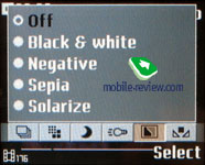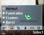 Equalizer setup is present among the other settings (Bass, Voice, Tremble etc), as well as the ability of creating your own settings. Depending on these settings the sound will actually change, this is noticeable. Camera. A 1.3 MP camera is integrated into the phone; in difference to Sony Ericsson S700 the matrix is CMOS that worsens the picture quality even in a sunny day. Noises are clearly seen on indoors photos, especially when lacking lights. The flash is optional and making no any influence on the quality of the photos. ![]()