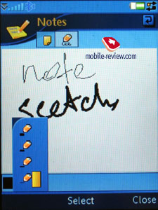 Менеджер соединений. Одна из особенностей UIQ 3.0 состоит в том, что на аппарате может одновременно быть запущено несколько соединений с различными сетевыми сервисами (например, подключение для загрузки почты через аккаунт Интернет, другое соединение – для отправки или приема MMS-сообщений). Эта возможность получила имя multi-homing. В качестве транспорта для соединений может выступать GSM data call (CSD), GSM High Speed data call (HSCSD), Packet data (GPRS), Bluetooth, WLAN (особенность P990, в M600 поддержка WiFi отсутствует). Для каждого соединения из меню (строка со стрелкой в статусной строке внизу) можно просмотреть время, количество полученных и переданных данных, текущее состояние соединения, количество приложений, использующих соединение в данный момент времени. Из этого же меню можно включить или отключить то или иное соединение. Возможность работы нескольких приложений с одним соединением трудно переоценить, это создает по-настоящему мультизадачную среду, в которой одновременно можно просматривать потоковое видео, проверять почту, отправлять сообщения. Важно лишь понимать, что ограничивающим фактором становится ширина канала, его пропускная способность. Если пользователь попытается использовать сразу несколько приложений, создающих большую нагрузку на канал, то результатом станет неработоспособность или очень медленная работа устройства. Наверняка, в системе предусмотрены различные приоритеты для приложений, но разобраться в них на данный момент не удалось. Офисные приложения. В отдельный раздел вынесены офисные приложения, всего их по умолчанию четыре (помимо органайзера, который является приложением стандартным). В разделе можно найти заметки, которые могут быть текстовыми (набор любым удобным способом, поддержка формата txt) либо написанными от руки (Scribble).