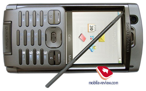 Диагональ экрана по сравнению с Р910 уменьшилась незначительно и составляет 2.76 дюйма (2.8 дюйма в предыдущей версии). Как несложно сообразить, размер точки уменьшился, что позволило сделать картинку более яркой и читаемой. Отображение 262000 цветов в данной модели отнюдь не номинальное, картинки красочные и яркие. По качеству экрана и прорисовки интерфейса модель превосходит большинство смартфонов других производителей, находится на одном уровне с Nokia N90. Последняя выигрывает, но незначительно и по мелочам (тут сказывается большее разрешение экрана). На солнце экран ведет себя отлично, картинка видна очень хорошо и по этому параметру дисплей вполне сравним даже с телефонами от Siemens. Неприятный момент заключается в том, что экран сильно утоплен и бликует, это нивелирует видимость картинки, приходится зачастую искать нужный угол для комфортного чтения. Завершая рассказ об экране можно с уверенностью говорить, что он современен и подойдет большинству пользователей. Совсем забыл упомянуть само собой разумеющуюся вещь, выделяющую P990 среди Symbian-смартфонов: экран сенсорный. На левой стороне вверху находится гнездо стилуса. Он сделан по аналогии с таковым у Р900, но немного больше по высоте. Особенностей у него нет, к расположению гнезда можно привыкнуть в короткие сроки.