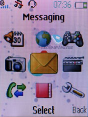 Группы абонентов могут служить только для массовой рассылки SMS, либо MMS. Для группы нельзя установить свою картинку, либо мелодию звонка. Присутствует Smart Search, в режиме ожидания можно начать набор номера, и телефон автоматически попытается найти его в списке вызовов или телефонной книге. Сообщения. Предельно просто создаются сообщения, никаких дополнительных настроек почти нет, единственное, что можно сделать отформатировать текст (EMS), соединенные сообщения поддерживаются. Есть шаблоны, которые вы можете завести самостоятельно. Предиктивный ввод текста от T9. До 6 соединенных сообщений возможно в этом аппарате. Реализация MMS-обычна. В целом по пункту Сообщения можно говорить, что он максимально схож с таковым на платформе А100.