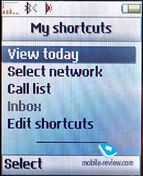 As usual it is possible to choose one or another menu item by joystick or left soft key. You can return to the previous menu level or in stand-by mode if press the other key, which is placed under it. It’s interesting that C-key doesn’t play any role in this process. So, users who get used to the phones of other manufacturers, will have some difficulties at first while using T610. There is a possibility to create a list of shortcut commands. It will give access to the most frequently used functions.