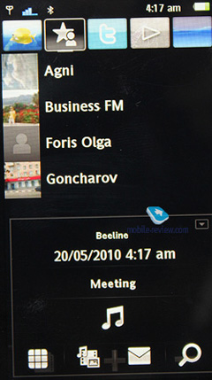 PositioningThe only difference from Vivaz is in the addition of QWERTY keypad. This is a niche model as the number of people who need QWERTY keypad in the side slider below ˆ400 is relatively small. Other solutions, which attract attention, are available as well. For Sony Ericsson it was a cheap way to come up with one more model without additional R&D expenses. ![]() If Vivaz targets young people, here the corporate users are in the center of attention, which is clear from the presence of the keypad. But the shot misses the target as both models have the same audience. There are no changes here, the phone is chosen predominantly by girls without particular insight into the world of mobile devices, but who need a nice looking solution with the keypad. The first month of sales proves the niche status of the phone. There is some demand for it, but this hero of the shelves will not stay there for long. It is not the product Sony Ericsson needs to return to the market. Back to the table of contents >>> Design, Dimensions and ControlsThe phone differs from Vivaz in dimensions. The keypad requires additional space and the model turned out to be bulky, but only in comparison with Vivaz as for modern phones its dimensions are quite modest. The model measures at 109x52x15 mm (4.29"x2.04"x0.59") and weighs at 117 g (4.12 oz) (Vivaz has 107x52x12.5 mm (4.21"x2.04"x0.49") and weighs 97 g (3.42 oz)). The difference is visible if you compare the two models. ![]() Sony Ericsson Vivaz Pro vs Sony Ericsson Vivaz: ![]() ![]() ![]() ![]() ![]() The model is available in two colors – black and light silver. ![]() All color solutions are offered in glossy plastic. If you look at it in the light you may notice some shades and the plastic sparkles on edges, which is nice. The back cover gets scratched easily and after several minutes of use the fingerprints will be left there as well. The top features the on/off button, which also locks the keypad (in comparison with Vivaz it is slightly moved to the back panel, which is not very convenient). On the left side we have a 3.5 mm headphones jack followed by a microUSB (synchronization, charger) protected with the rubber cap. On this side you also have a loudspeaker. The left side hosts the dual volume control button, video recording and camera buttons, which are separate ones. The bottom has an opening for the hand strap. The microphone is on the left side, which may lead to the inconvenience depending on how you hold the phone in your hands. ![]() ![]() ![]() The camera and LED flash are on the back of the handset. The back cover feels a bit loose, but this feeling does not appear straight away and it usually remains the same afterwards. There is some squeaking when you hold the model in hands, but it is not a big deal. The build is excellent with one small drawback. We have no serious issues here. The side slider has an automatic mechanism, but due to the body size it is hardly felt and you need some efforts to open the slider. Back to the table of contents >>> ScreenThe model is on par with typical Nokia solutions in terms of its screen. It has a 3.2 " screen with 640x360 (39x69 mm) resolution, aspect ratio - 16:9 and can boast up to 16 million colors. The picture is bright and juicy and attracts attention. The screen cannot compete with state-of-the-art AMOLED display, but it is quite good for its price range. ![]() We have resistive screen here, so multitouch is not supported as it is always the case in similar products. The screen is covered with plastic, which is quite thick and hard. There is no difference from glass. I would like to stress, that if you scratch it on purpose the marks will be left, but during the usual everyday use you will not notice any problems. This is not what you get in Nokia 5800 and its clones, but it trails X6 with another plastic type ("glass protection"). ![]() The screen fits up to 14 text lines and 3 service lines. The information is well legible, while the fonts are not similar to those used by Nokia, so you get a different impression from the model. Some will like it, some will not, but this is only the issue of habit. In the box you will find a stylus, which is not necessary as the majority of operations can be carried out with fingers. The screen orientation changes with a small delay and it is not as swift as in Android models or iPhone. The reason is in Symbian capabilities. Back to the table of contents >>> Keypad and Text InputThere are three hardware buttons on the front – call, end call and menu buttons. In all menus end call button moves you one level up. The text can be entered in three different ways or to be more precise by using three keypads plus a traditional QWERTY keypad. ![]() I will start from QWERTY keypad. It has 42 buttons in 4 rows. Bigger number of buttons allowed for better localization in Russian. Navigation keys are relatively uncomfortable, but this is the only complaint. The keypad is very good for such a small device. Those who have big hands will not be comfortable as they are likely to touch the phone's edges and it is not easy to move fingers. But this is just the issue of habit and nothing more. You have to try the keypad before purchase, but girls usually forget about such important trifles. ![]() ![]() ![]() ![]() ![]() ![]() Virtual Keypads First, we have a traditional keypad with consequential button pressing, which imitates ordinary phones on the touchscreen. It works only vertically and is easy to use with one hand. All language packages available for S60 are supported. The second type of the keypad is called miniQWERTY and it works both horizontally and vertically. Stylus allows more convenient input with this keypad, but you can use your nails as well. By the way, women will be able to work with the keypad easily and even the long nails are not a problem here. When you choose a letter it is highlighted and becomes larger in size. The third type is represented by a usual QWERTY k