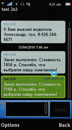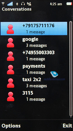 Navigation works well. Google Maps and the trial version of WisePilot are available. I think, the owners of the model will not pay for the full version of this software, but some people may need it. It clearly looses to standard OVI MAPS as Google Maps cannot substitute Nokia product if you need full-time navigation, but if you require this feature occasionally then you will not see the difference. In SMS you can display all communication as the chat. It takes some time to start, especially if you have many saved messages.