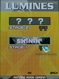 В телефоне три игры, это Lumines Block Challenge (вариант тетриса), Marble Madnes 3D (игра, использующая датчик движения, необходимо катать шарик), V-Rally 3D (трехмерные гонки). Набор игр интересен, особенно привлекают гонки, которые выглядят неплохо. ![]()