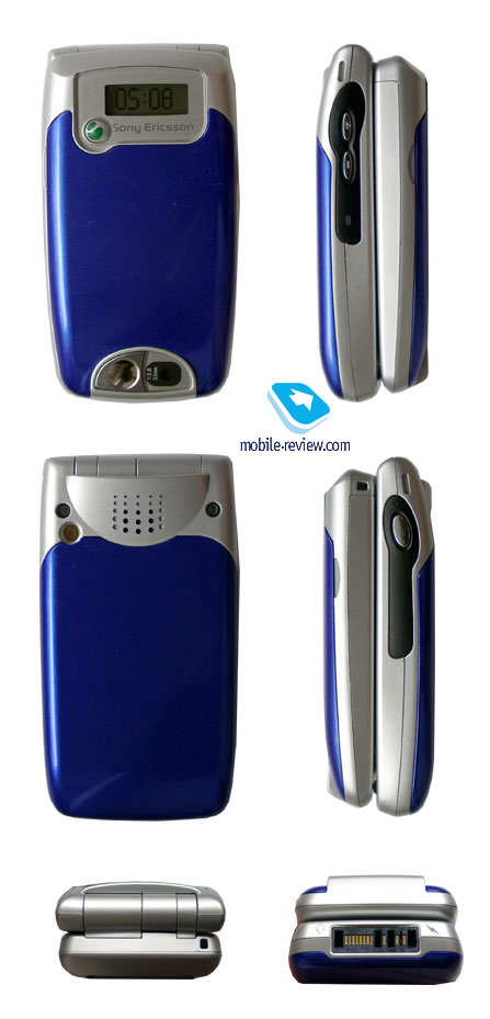 Снять панели достаточно легко, при этом на самом телефоне они зафиксированы хорошо и не болтаются. Качество использованного пластика очень высокое. Боковинки аппарата, некоторые части окрашены в один и тот же серебристый цвет. Клавиши, расположенные на боковых частях аппараты заключены в пластик черного цвета, также оригинальное дизайнерское решение. ![]() На внешней поверхности вы можете видеть в самом верху внешний дисплей, он небольшой по размеру, прямоугольной формы. В режиме ожидания на экране показываются часы, если воспользоваться боковыми клавишами, то вы увидите дату, уровень сигнала, заряда батареи, выбранный профиль. В принципе экран отображает до одной текстовой строки, плюс строку служебных иконок. Он имеет подсветку синего цвета. ![]() ![]() Размеры внешнего экрана, то, что он монохромный вызвало много споров. На мой взгляд, применение такого экрана обусловлено тем, что он максимально функционален и потребляет минимум энергии. Со своими задачами экран справляется на все сто, поэтому говорить, что его характеристики слабы нельзя. По большому счету наличие внешнего цветного экрана, это имиджевая или если хотите развлекательная функция. На нижней стороне внешней части аппарата располагается камера и тут же окошко для фотографирования себя. Сделать фотографию можно только в раскрытом состоянии. Для доступа к функции фотографирования на правой боковой поверхности предусмотрена специальная клавиша. К слову сказать, там же располагается окошко ИК-порта. ![]() На левой боковой поверхности находятся клавиши регулировки громкости, служебный индикатор. Сзади можно видеть антенный адаптер, он не прикрыт заглушкой. В аппарате есть отверстие для ремешка, но насколько оно необходимо судить не берусь. На нижнем торце вы можете видеть стандартный интерфейсный разъем, к нему же подключается гарнитура, отдельного разъема под нее нет. ![]() Открыть раскладушку можно одной рукой, раскрытие происходит с характерным щелчком (такой же в японских аппаратах), при закрытии вы также слышите его. В раскрытом состоянии аппарат хорошо лежит в руке, угол составляет 10 градусов. Внутренний экран выполнен, как уже говорилось, по технологии TFD, на солнце картинка видна, цвета хоть и выцветают, но не блекнут окончательно. ![]() ![]() Разрешение экрана 128х160 точек (32x38 мм), что позволяет отображать до 5 строк текста, строку подписей к софт-клавишам, плюс большие заголовки. Экран в этой модели один из лучших из представленных на рынке. Клавиатура выполнена из пластика, клавиши большие и хорошо разнесены между собой. Работать на этом аппарате крайне приятно, удобство набора текста выше среднего за счет клавиш. ![]() Навигационная клавиша четырехпозиционная, в нее вписана клавиша ОК. Если навигация также не составляет проблем, то вот кнопка ОК не всегда удобна, иногда нажатие на нее происходит не так, как планировалось. Сказывается, что клавиша горизонтальная. Подсветка клавиатуры бледно-синего цвета, обозначения на всех клавишах хорошо видны. На задней поверхности можно видеть отверстия динамика, он служит для воспроизведения мелодий звонка. Оговорюсь, что субъективно громкость звонка несколько выше, чем у Т610, аппарат звучит сильнее. Сняв заднюю панель, вы увидите аккумулятор. Любопытно, что панель прижимает аккумулятор, сняв ее вы увидите, что батарея приподнял