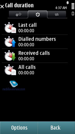 Back to the table of contents >>> Call LogThis menu allows the user to browse missed, incoming and outgoing calls; what is more, it is up to you to set how long these entries will be kept intact (by default - one month). Every entry in these lists has the following information attached: call type (voice or data), duration, date, time and phone number (if identified). Calls can also be filtered by type (data, GPRS, voice, incoming, outgoing, etc). On top of that this menu keeps track of total calls duration and cost. During calls you will see call duration displayed on the screen. As soon as you hang up, the phone will show you call's total duration (this feature can be disabled).