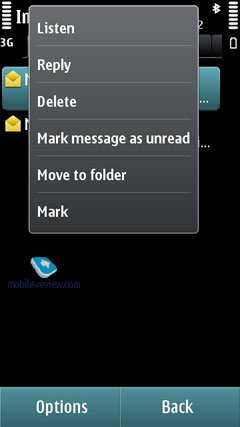 One new feature was added here and now you can choose the messages display mode – traditional or chat (Conversations). In the chat mode you can delete separate entries and handle them in general (save, forward, etc.) Apart from short messages, you can also take advantage of email (POP3/IMAP4/SMTP/MIME2). Moreover, the user is allowed to make up templates for all message types - the system comes preinstalled with 11 for SMS. Mail client supports HTML, which is an additional version of Nokia Email Client and this solution is enough for the majority of users. Composing an email letter, the user can decide whether "Subject", "Cc", "Bcc" fields will be displayed or not (choice is available for every field). Additionally, the client now features "Priority" field (Low, Normal, and High). To the body of the message you can attach any files, including those that are not supported by the device. The system can automatically monitor mail boxes for new messages, on top of that the user can setup the email retrieval time (day, time). You can also set whether you want to have whole messages uploaded or only certain parts (limit set in Kb), or you want to retrieve headers only. Push Mail (only via IMAP IDLE) is supported. On top of that, you can pick the folders on an IMAP server you will need to synchronize with your phone.