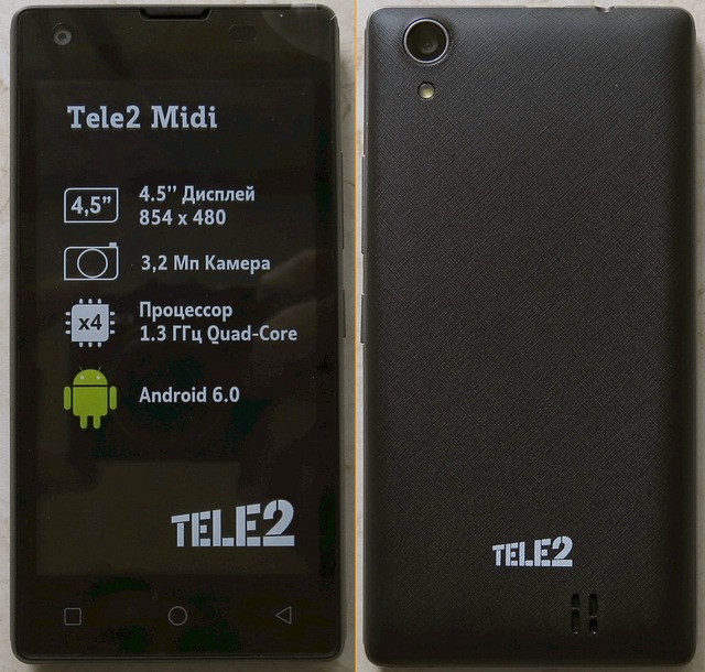 Смартфон Tele2 MidiВторой бюджетный смартфон после Mini. Надо полагать, что следующий будет называться Maxi. Нынешний Midi для своего дисплея 4.5 дюйма и цены 2 890 руб. выглядит нормально, Android 6 и четырехъядерный процессор, поддержки 4G (LTE) нет. Менять Mini на Midi я особого смысла не вижу, разница не настолько велика. Годится в качестве современного бюджетного смартфона нижней ценовой категории.