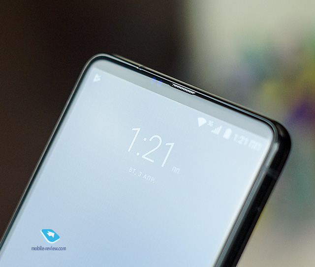 Несмотря на тонкую рамку сверху, разработчик все-таки решил использовать там датчики и разговорный динамик. Громкость его невысокая, качество среднее: тембр смещен в низкие частоты, разборчивость хотелось бы четче, а громкость выше. Также стоит отметить, что из-за особенностей конструкции нужно будет привыкнуть к расположению динамика: первое время приходится выбирать положение телефона возле уха, чтобы звук проникал точно в ушную раковину.