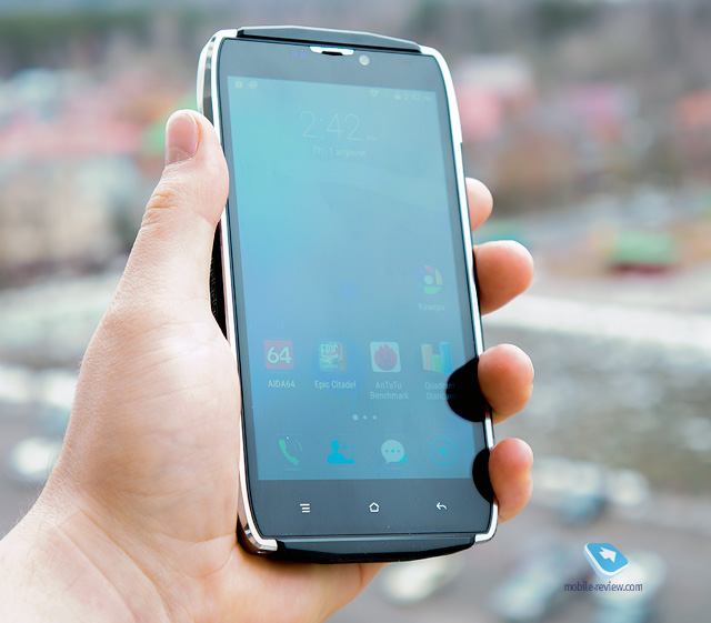 ДисплейВ этом устройстве используется экран, диагональ которого составляет 5 дюймов. Физический размер – 62х110 мм, рамка сверху – 16 мм, снизу – 21 мм, справа и слева – примерно по 7 мм. Присутствует антибликовое покрытие, достаточно эффективное.