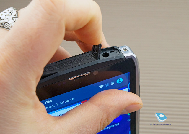 Снизу – микрофон, сверху под резиновыми заглушками (вероятно, со временем они разболтаются и оторвутся) – разъем для наушников и microUSB.