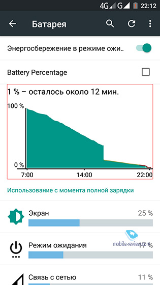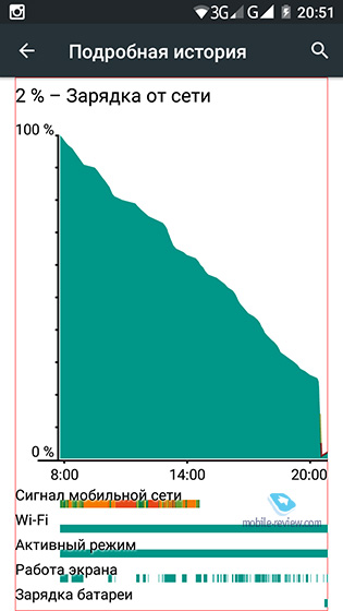 На свету АккумуляторВ данной модели используется съемный литий-ионный (Li-Ion) аккумулятор емкостью 3500 мАч. Официальных данных о времени работы нет. В моих условиях Uhans U200 «жил» примерно полтора дня (либо полный день при максимальной нагрузке): за все время около часа разговоров, 7-8 часов 3G/4G, 10 часов Wi-Fi, камера – 1 час, около 2 часов прослушивания музыки, 4 часа свечения экрана. Заметил небольшую странность: аккумулятор равномерно разряжается примерно до 10 процентов, а потом резко вырубается, после включения на экране отображается 1 процент.